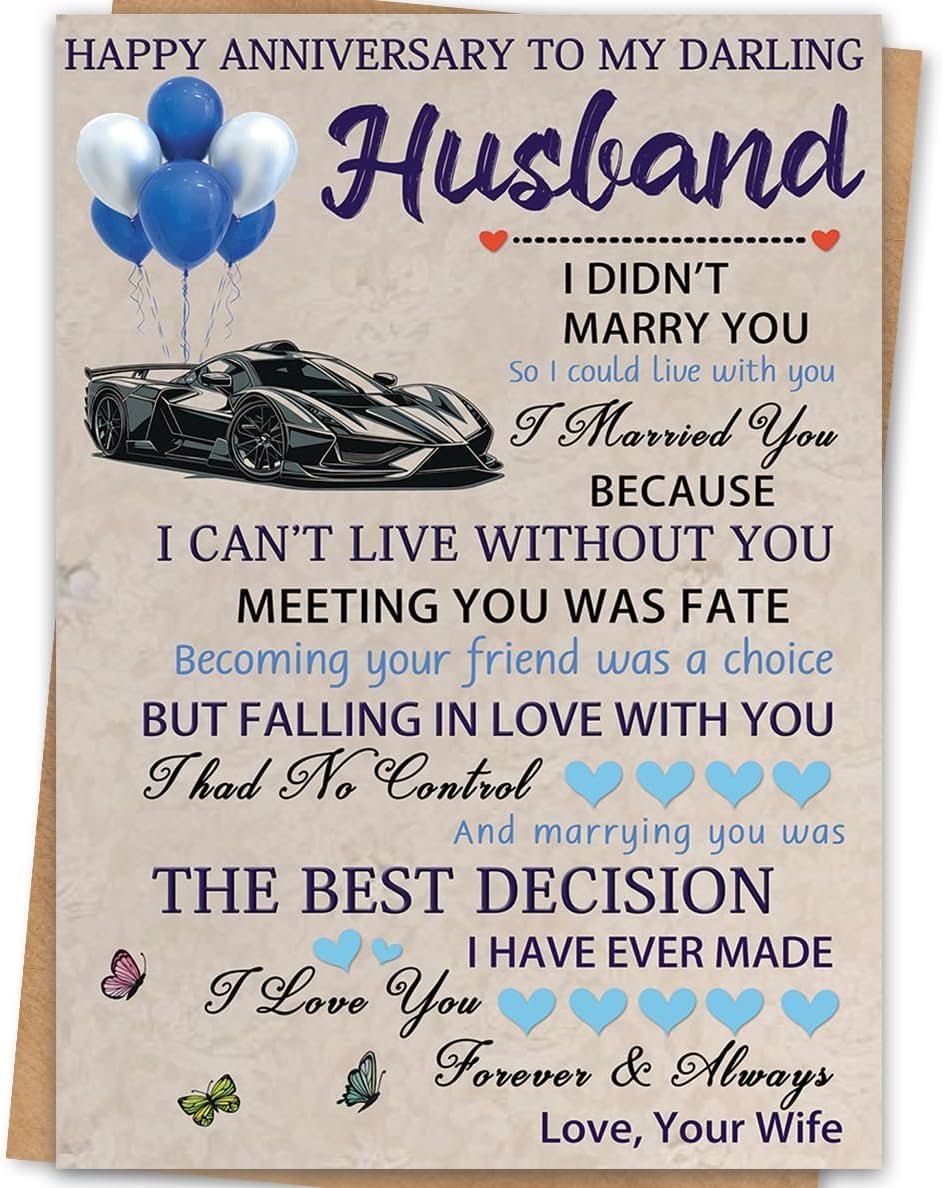Anniversary Card to Husband, Anniversary Wedding Gifts from Wife for Husband,Unique Gift Idea for Men Him