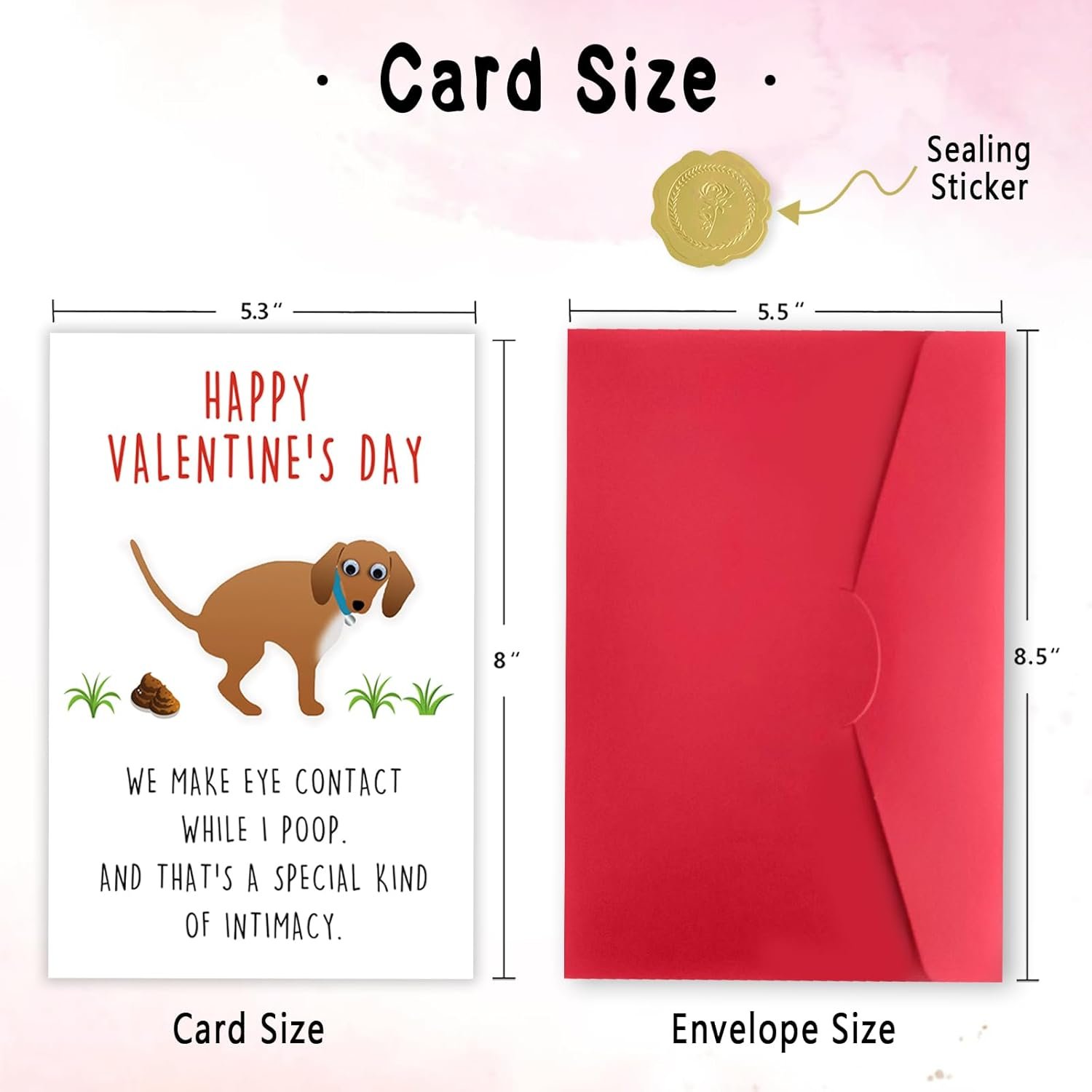 - Valentines gift measures package include: The 8 x 5.3inches / 20.5 x 13.5cm greeting card and sturdy gold matching envelope.